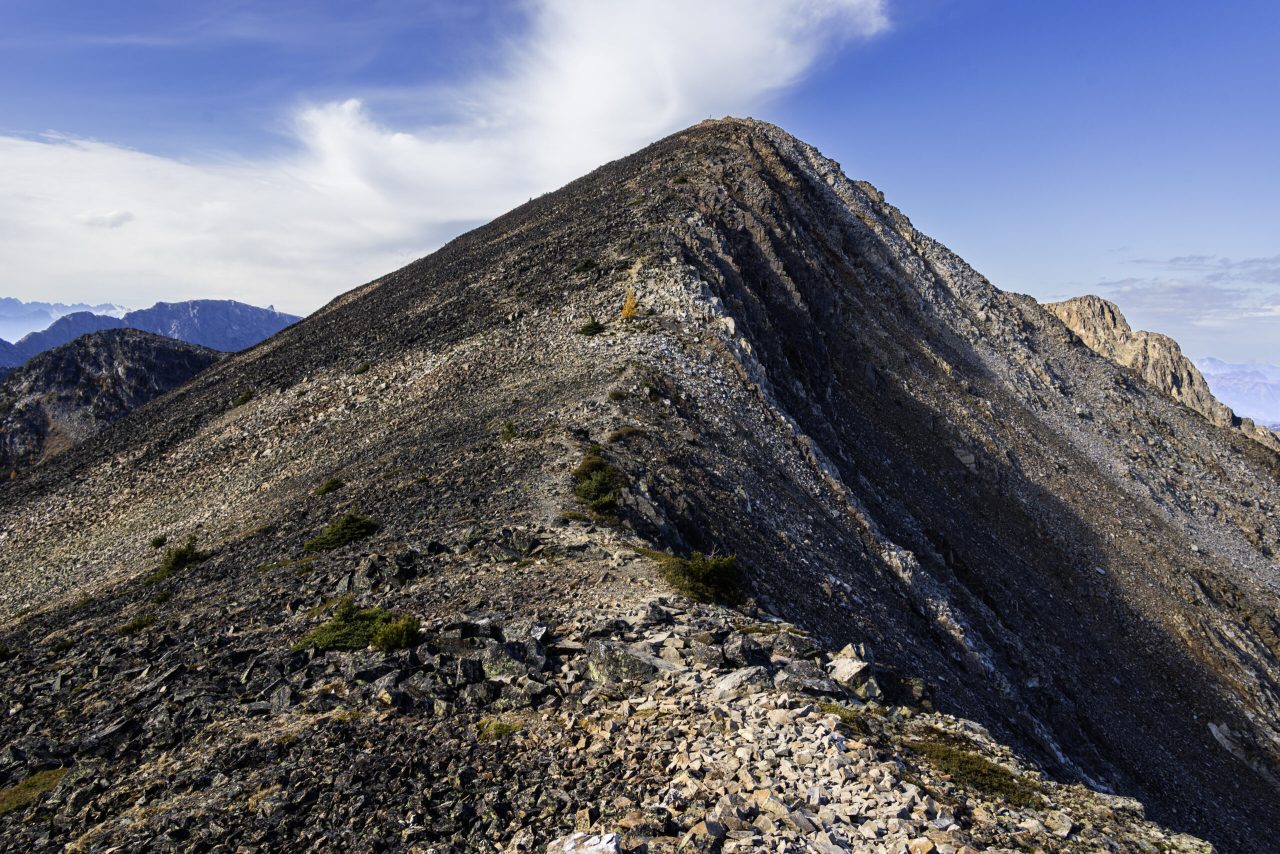 After the meadow, you are preparing for the most challenging part of the trail. It’s a steep and rocky/scree field that has no markers at all. Watch out for the falling rocks if there are someone above you. Fortunately this part is short. After this part, it’s a short ridge walk to the true peak of Frosty Mountain/Summit.