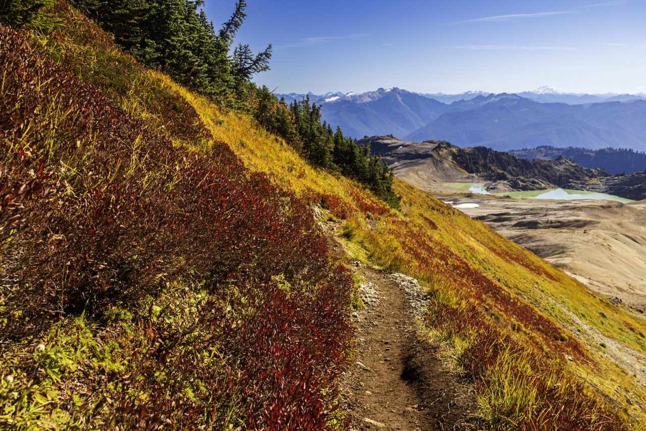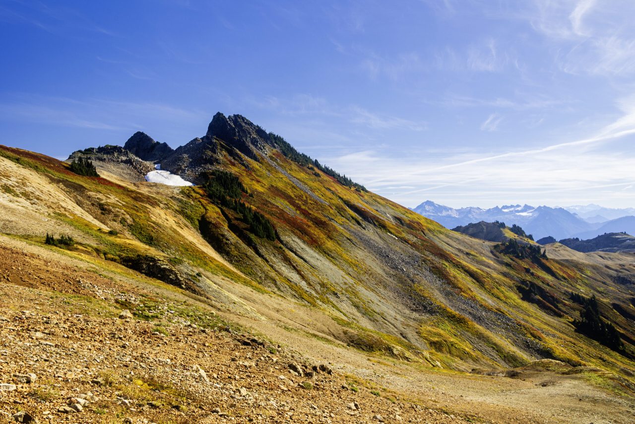 What really makes Ptarmigan Ridge special is the scenery — it’s nonstop jaw-dropping. You’re surrounded by dramatic alpine views the whole way: Mount Shuksan looks majestic behind you, and Mount Baker gets bigger and bigger as you go. On a clear day, you can even see Mount Rainier far in the distance. Depending on the season, you might walk past lingering snowfields, patches of wildflowers, and mountain goats hanging out on the ridges.