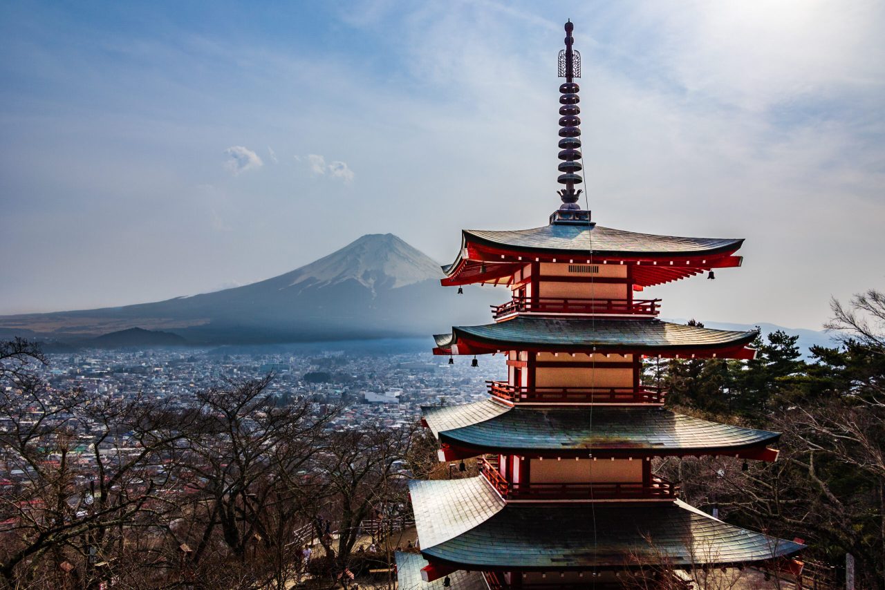 We spent the whole day around Lake Kawaguchiko area and saw Mount Fuji from different angles and view points. We saw it on the shore of Lake Kawaguchiko. I got the advice that the north shore of the lake was the best place to see the mountain and indeed it was. We saw it on top of a local mountain by taking a ropeway/tram. We saw it along with Chureito Pagoda (which is a 30 minute-train-ride-and-15-minute-walk-and-hike from Kawaguchiko station, yes there is a short or intermediate hike, depends on your physical level, to get to Chureito Pagoda). We saw it through a torii gate called Kanadorii near Fujisan station (which is just one station away from Kawaguchiko station).