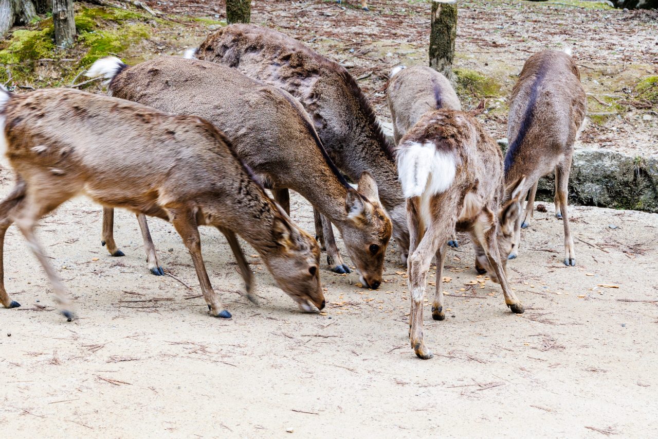 Nara (奈良), was the first permanent capital of Japan. As of today, there are a lot of temples and shrines in Nara. Many of the temples are in Nara park. In Nara park, you will encounter friendly deer begging for foods. There are special deer biscuits you can buy for 200 yen a bag to feed them. If you come in the right season (late winter and early spring), you will enjoy plum boom in the park.