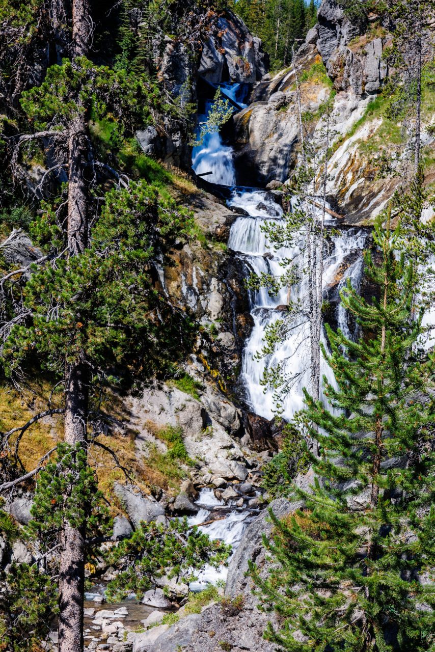 Photos of waterfalls inside or near Yellowstone National Park. The waterfall in the last photo is not anywhere near Yellowstone. It is Snoqualmie Falls in Washington state. Wet made a detour on our way to Yellowstone to visit Snoqualmie Falls. All other waterfalls are in or very close to Yellowstone.
